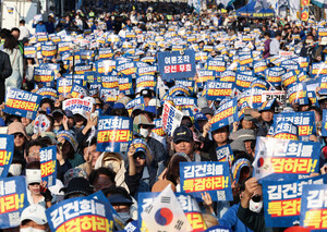 ※ 아래 관련 기사목록의 각 기사 제목을 클릭하면 바로 해당 기사로 이동합니다.[민심은 탄핵①] 1찍이·2찍이는 없다...尹·윤핵관에 속은 사기피해자만 있을 뿐[민심은 탄핵②] 한동훈 ‘尹과 공멸이냐, 국민 편이냐?’...말 아닌 행동 필요‘하야하라’ ‘물러나라’ ‘끌어내리겠다’ ‘국민 앞에 사죄하라’ 토요일(2일) 더불어민주당이 주최한 서울역 인근 집회는 ‘김건희 국정농단 규탄’과 ‘김건희 특검 촉구’를 내걸었지만, 윤석열 대통령 ‘하야’·‘퇴진’ 요구와 ‘탄핵’ 주장이 분출됐다. 참석자는 주최 측 추산 30만명, 경찰 추산 1만