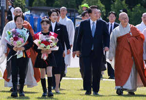 윤석열 대통령의 부인 김건희 여사는 지난 5월 19일 '회암사 사리 이운(부처를 옮겨 모시는 것) 기념 문화축제 및 삼대화상 다례재' 행사에 참석했다. 지난해 12월 네덜란드 국빈 방문 직후부터 잠행에 들어간 김 여사가 총선 국면에서 모습을 감첬다가 5개월여 만에 처음 공개적으로 모습을 드러낸 행사였다. 그 보다 며칠 앞선 지난달 16일 김 여사는 캄보디아 정상 부부 오찬에도 나섰지만 당시 대통령실은 김 여사 모습을 사진으로만 공개했다.김 여사는 지난 4일 한-아프리카 정상회의 배우자 프로그램을 주최한 데 이어 6일 현충일 추념식에
