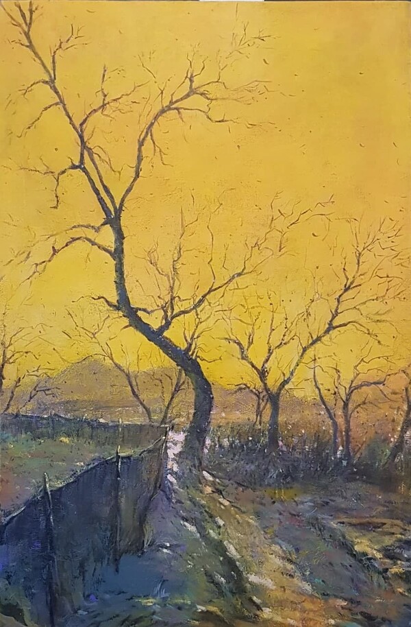 회화다운 회화는 붓터치 자욱의 선명함이 있는 날것 그대로를 기본으로 한다. 19세기 사진의 발명 이전 회화의 본래적 기능이었던 재현(representation) 목적과는 분명 다르다. 사실을 기반으로 한 소설이 사실 그대로를 써서는 안되듯이 말이다. 그의 작품이 몽환적인 동양화 느낌이 나는 것은, 다색 적층(多色 積層), 색과 색이 겹치면서 오는 레이어에서 오는 아우라가 남다르기 때문이다.