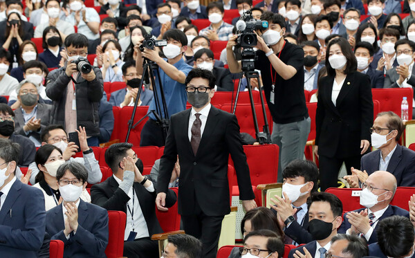 한 장관은 또 “국민이 원하는 진짜 검찰 개혁, 진짜 형사사법시스템 개혁은 사회적 강자에 대해서도 엄정하게 수사할 수 있는 공정한 시스템을 만드는 것”이라며 “저와 함께 중대범죄에 대한 대응 공백을 최소하고 형사사법체계를 바로 세우도록 최선을 다하자”고 덧붙였다.