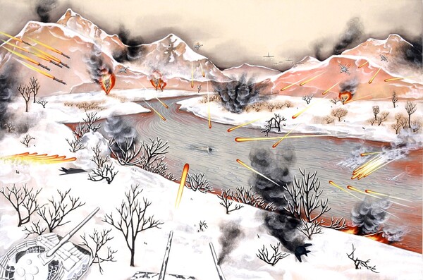 ‘한국화’(동양화)라고 하면 여전히 ‘음풍농월’(吟風弄月)의 산수화가 연상되던 2006년, 대학원생 고영미는 미사일과 폭탄이 날아드는 전투 장면을 표현한 작품을 발표해 화단에 충격을 주었다.