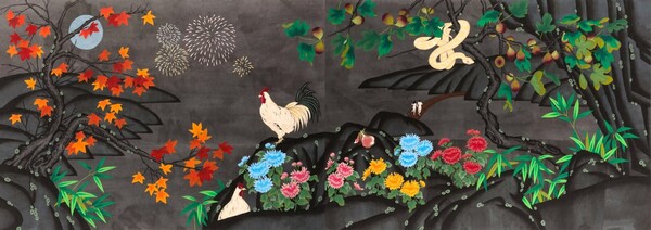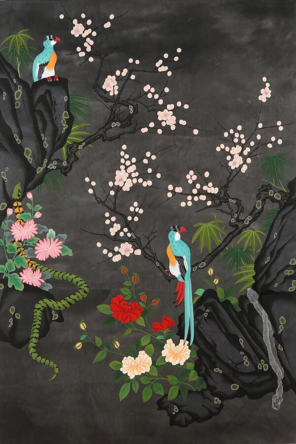 만물이 만개하는 매화 향 가득한 평화로운 봄 밤, 화려한 치장을 한 한 쌍의 새가 자리잡은 둥지에 뱀이 스멀스멀 침투한다. 화폭에는 긴장감이 흐른다. 노래하지 않는 새들은 위험을 감지하고 있을 지도 모른다. 비극의 발생이 예견되는 불편한 풍경은 사태가 평화로이 해결되기를 기원하는 관객들의 갈망을 불러 일으킨다.