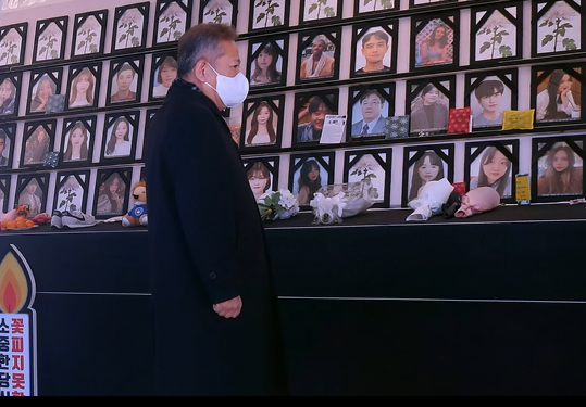 이상민 행정안전부 장관이 설 연휴 첫날인 21일 오전 이태원 참사 희생자 시민합동분향소를 예고없이 찾아 기습 조문했다.