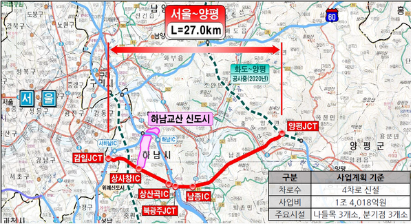 원안 노선은 총 연장이 27km이지만 강상면 종점의 변경안은 총 연장이 29km이다.
