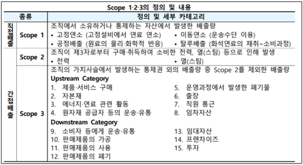 온실가스 프로토콜에 따른 탄소배출 분류 스코프(SCOPE) 1,2,3에서 스코프1은 공장내 탄소 감축 노력에 불과하지만, 스코프2는 역내 에너지 생산 구조 즉 전력 생산에 좌우 된다. 마지막으로 스코프3은 제품 생산과 소비에 이르는 전 과정의 탄소 배출을 포함한다. 유럽이나 미국 상장 또는 사무소를 설치한 기업만이 이 공시 의무에 해당한다고 생각하면 오산이다. 삼성전자를 예로 들면 협력업체와의 관계에서 발생하는 탄소 배출을 다 포함해야 한다. 그래서 삼성전자만의 문제가 아니라, 삼성 협력업체 전부의 숙제가 된다는 것이다.