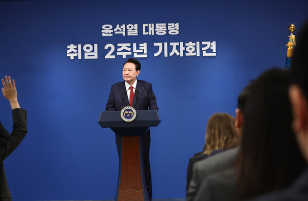 윤석열 대통령이 취임 2주년 기자회견에서 70분 가량 각종 현안에 대해 기자들의 질문을 받았지만, 기존에 언급했던 입장에서 달라진 것 없는 내용을 반복했다.