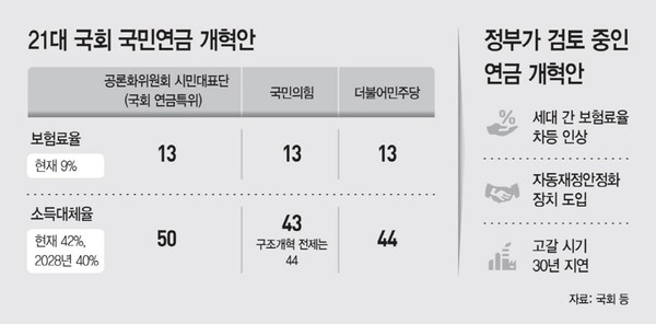 ◇ 21대 국회 개혁안 ‘보험료율 13%, 소득대체율 44%’
