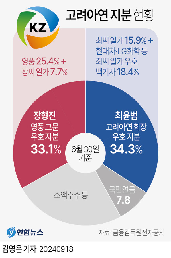 최윤범 고려아연 회장도 이날 '고려아연과 계열사, 협력사 임직원에게 드리는 글'을 통해 "온 힘을 다해 공개매수를 저지하고 이 싸움에서 반드시 이길 것"이라고 밝혔다. 최 회장은 "추석연휴 저를 비롯한 고려아연 경영진 전원은 쉬지 않고 일했고, 그들의 허점과 실수를 파악하고 대항해 이기는 방법을 찾아낼 수 있었다"며 "며칠간 밤낮으로 많은 고마운 분들의 도움과 격려를 받아 계획을 짜낸 저는 이 싸움에서 우리가 이길 것으로 확신한다"고 덧붙였다.