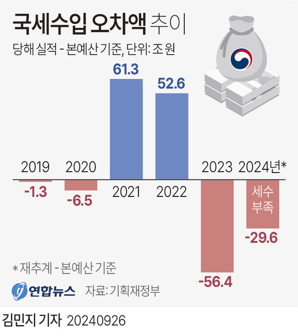 올해 세수 30조원 펑크…기재부, 4년 연속 세수추계 큰 오차