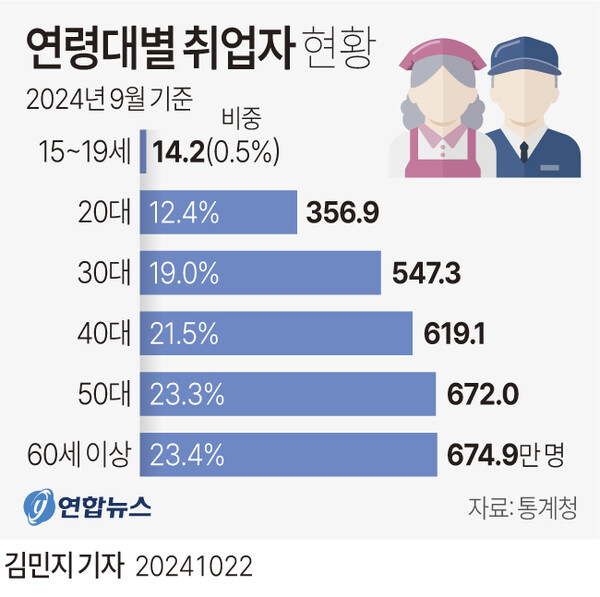 "은퇴는 옛말" 60세 이상 취업자, 처음 50대 제쳤다…전 연령대 1위