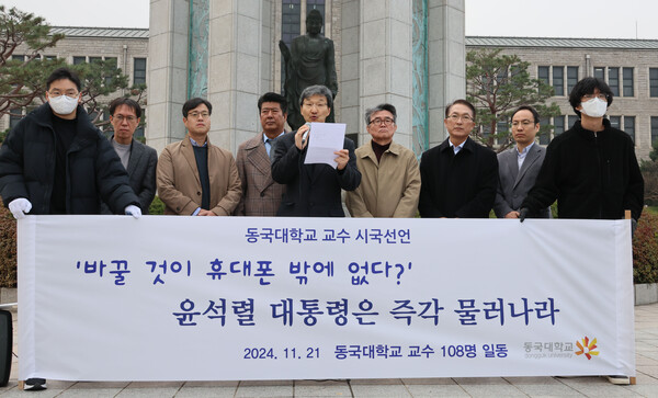 동국대 교수들도 이날 기자회견을 열고 "대통령에게 더 이상 국가 운영을 맡길 수 없다고 판단한다"고 주장했다.
