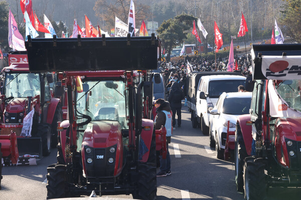 22일 전농 등에 따르면 '전봉준 투쟁단' 트랙터 30여대와 화물차 50여대는 전날 정오쯤 과천대로를 통해 서울에 진입하려다 서초구 남태령 고개 인근에서 경찰에 저지된 뒤 그 자리에서 약 20시간째 대치 중이다.