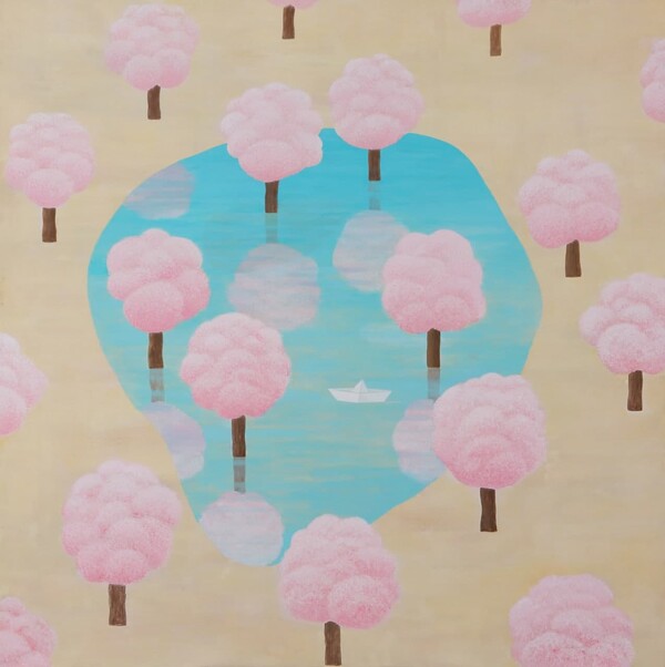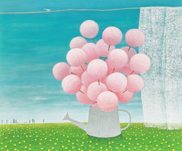 바다로 상징되는 물은 생명이며 순환이다. 분홍색 사탕볼은 무한한 생명수이다. 김인옥 회화는 차용한 풍경과 오브제를 ‘함축과 생략’으로 표현한다. 작가는 대상을 철저하게 눈으로 관찰한다.