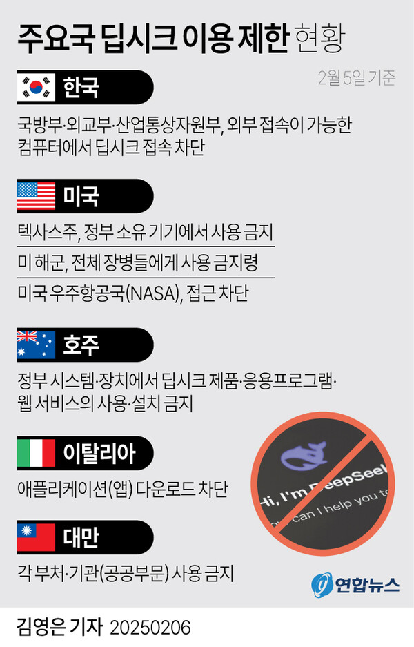 정부 부처들이 6일 중국 인공지능(AI) 딥시크(Deepseek) 접속 차단에 대거 나섰다.
