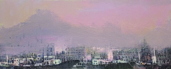 몽환적인 동양화 느낌은 다색 적층(多色 積層), 색과 색이 겹진 레이어의 아우라에서 온다. 화면을 들여다 보는 관람객은 종종 길을 잃고 목포 어딘가를 여행하고 있는 착각속에 빠져든다. 붓터치가 굳으면서 드러나는 자욱은 그 자체로 마띠에르와 오브제 역할을 한다.