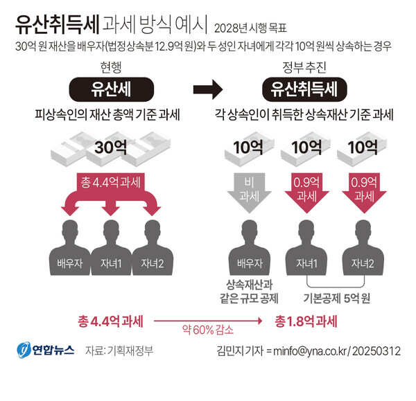 1. ‘유산취득세’ 연내 입법, 2028년 시행…상속세 면세점, 現 10억→최소 20억