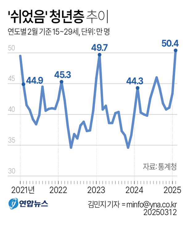 건설업·제조업 고용한파 계속…청년 쉬었음 50만명 '역대 최대'