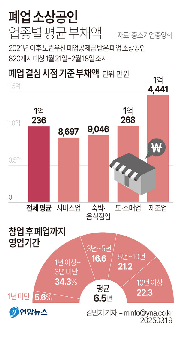 소상공인 창업 후 폐업까지 평균 6년 6개월…평균 부채 1억원 넘어