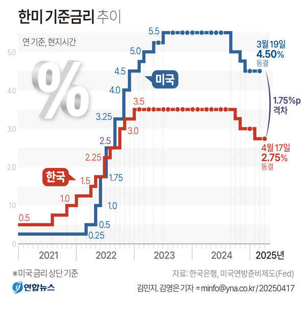 이창용 한국은행 총재는 17일 한은 금융통화위원회가 기준금리를 연 2.75%로 동결한 데 대해 "(미국발 관세 충격으로) 갑자기 어두운 터널로 들어온 느낌"이라며 "(통화정책의) 스피드를 조절하면서 밝아질 때까지 기다리자는 것"이라고 배경을 설명했다.