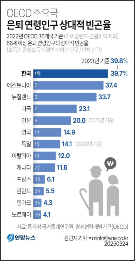 석 교수는 “개별 제도별로 조정 속도를 달리하는 것은 물론 개인 건강·소득 등의 차이를 고려한 유연한 정책설계가 필요하다”며 "중요한 것은 연령 상향 조치가 고령층 삶의 질을 저하하지 않도록 설계되는 것"이라고 강조했다. 물론 노인연령을 올리려면 청년 일자리 감소, 기업 부담 증가 등에 대한 사회적 합의가 전제돼야 한다. OECD 최고 수준인 노인 빈곤율을 감안해 퇴직 후 계약직 재고용, 임금 피크제, 순환근무제 등 고령자 재취업 지원책도 병행돼야 한다.