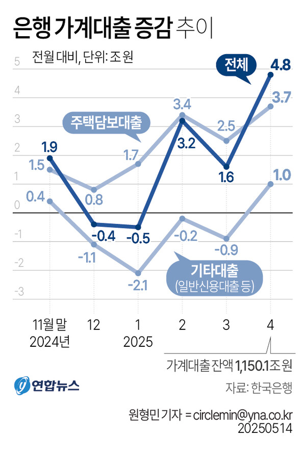 2. 4월 주담대 3.7조 늘며 가계대출 견인차…기업대출 14.4조↑”관세 대응”