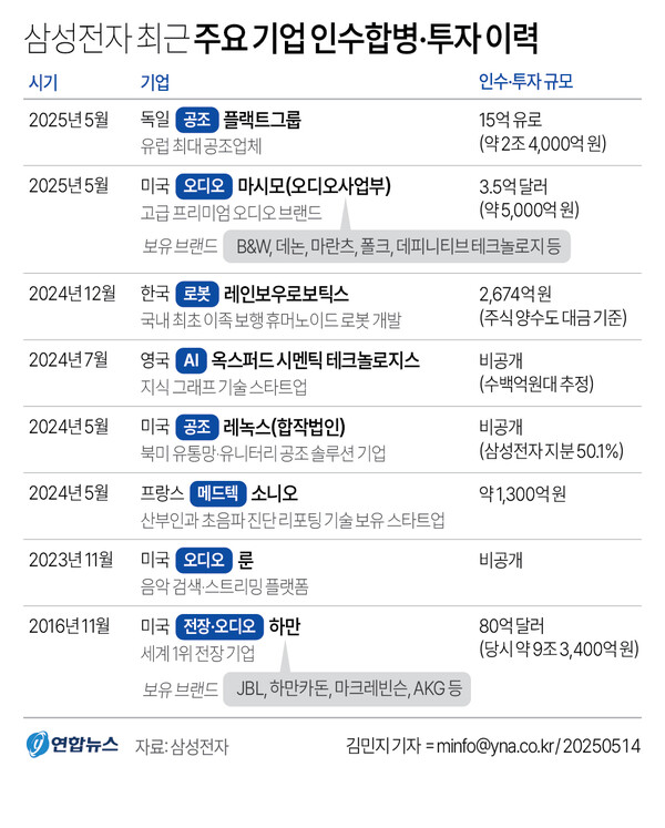 삼성전자가 유럽 최대 공조기(空調器∙실내의 온도와 습도를 조절하는 기계장치) 업체인 독일 플랙트그룹을 15억유로(약 2조3,000억원)에 인수한다. 삼성전자가 조 단위의 대형 인수합병(M&A)에 나선 것은 전장∙오디오 전문사 ‘하만’(9조2,000억원) 인수가 완료된 2017년 이후 8년 만이다.