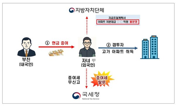 증여세 부담을 피하기 위해 자녀에게 현금을 편법 증여해 아파트를 구입하는 사례도 속출하고 있다. 국세청은 아파트 취득 거래에 대해 자금출처 검증을 대폭 강화하고, 증여 거래에 대해서도 증여세 적정 신고 여부를 빠짐없이 들여다본다는 계획이다. 실제 편법 증여와 같은 투기성 거래에 대응하기 위한 '부동산 감독 추진단'이 3일 공식 출범했다.
